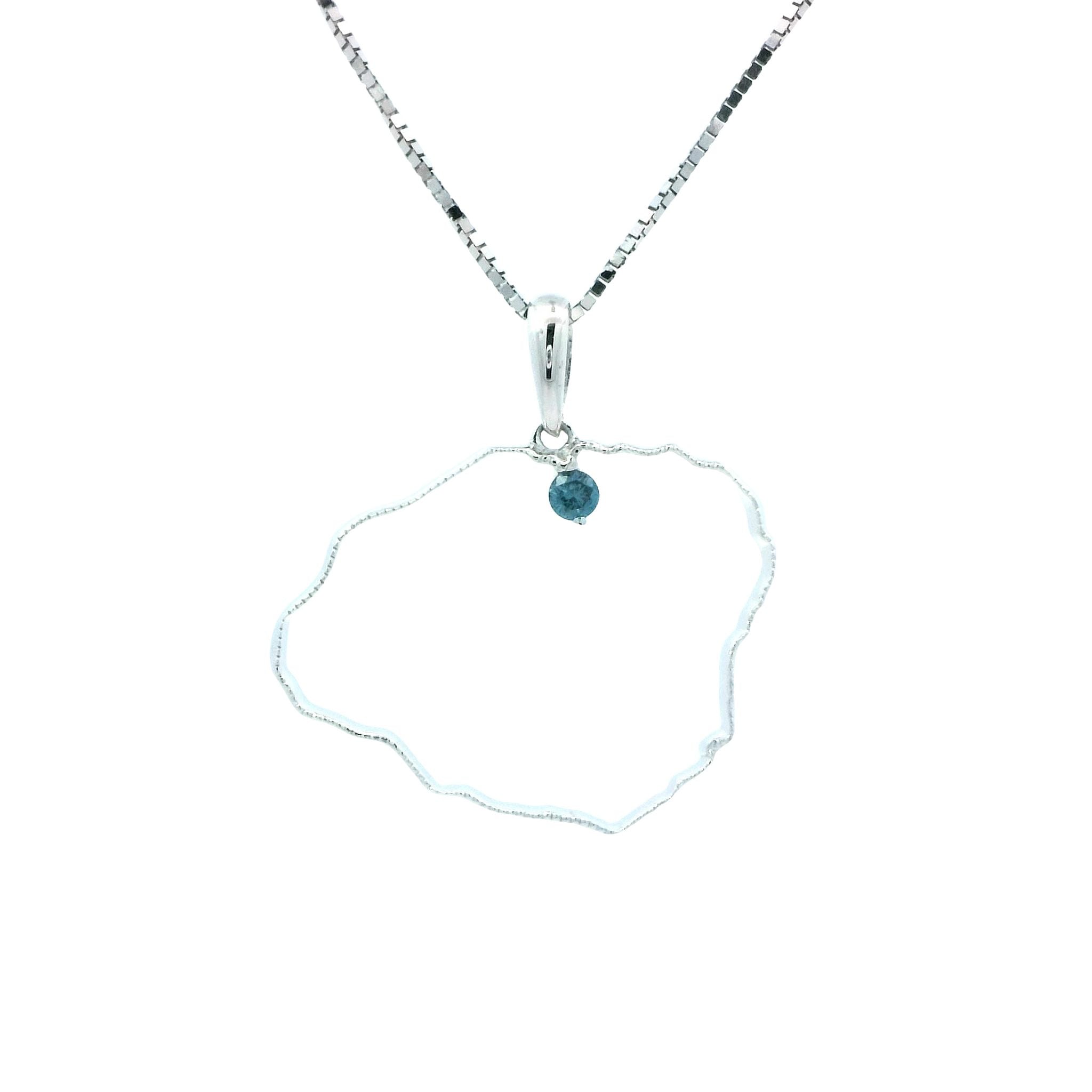 Kauai Outline Pendant White Gold with Single Blue Diamond at Hanalei