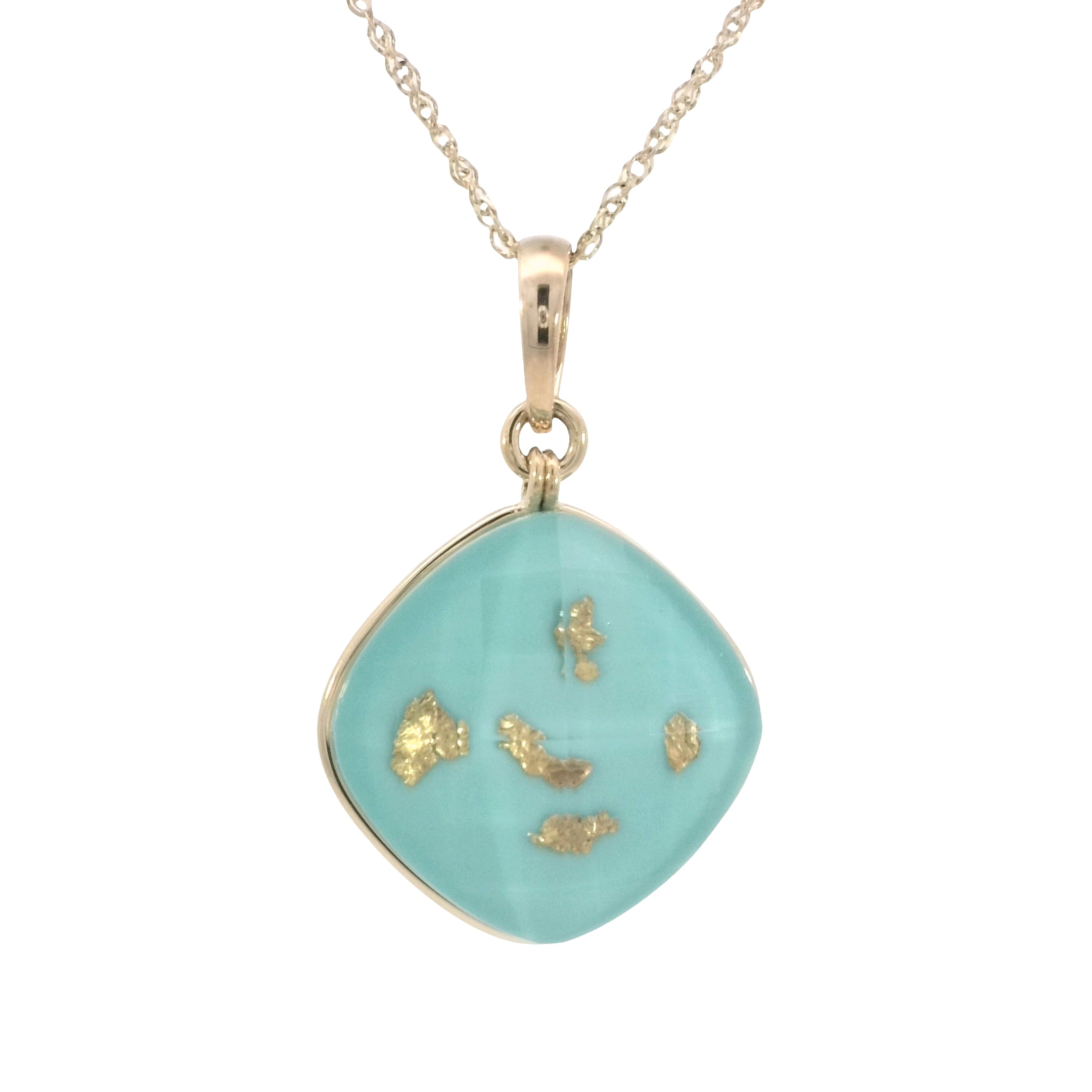 - Reconstituted Turquoise with 24k Gold Leaf Islands and Clear Faceted Quartz