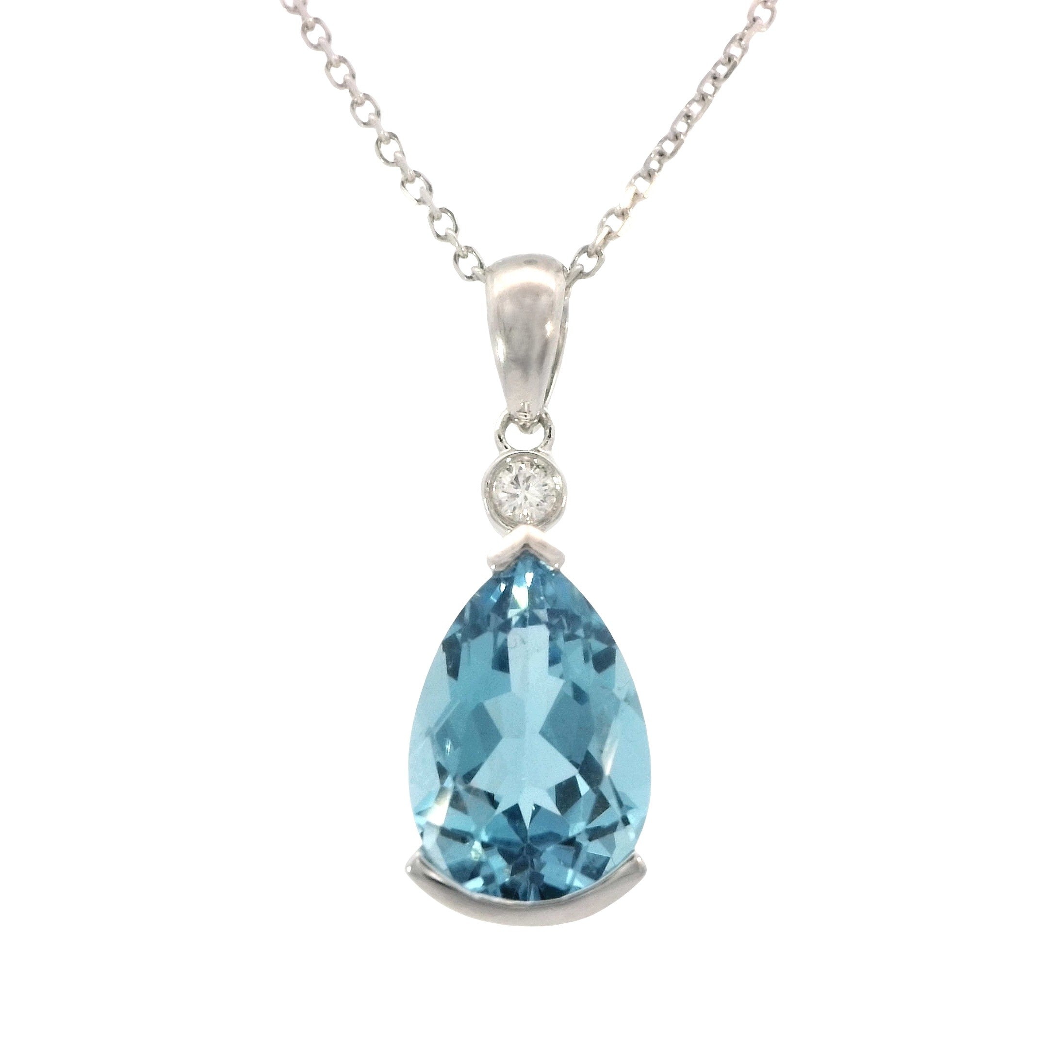 Sterling Silver Blue Topaz and Lab Created Diamond Necklace