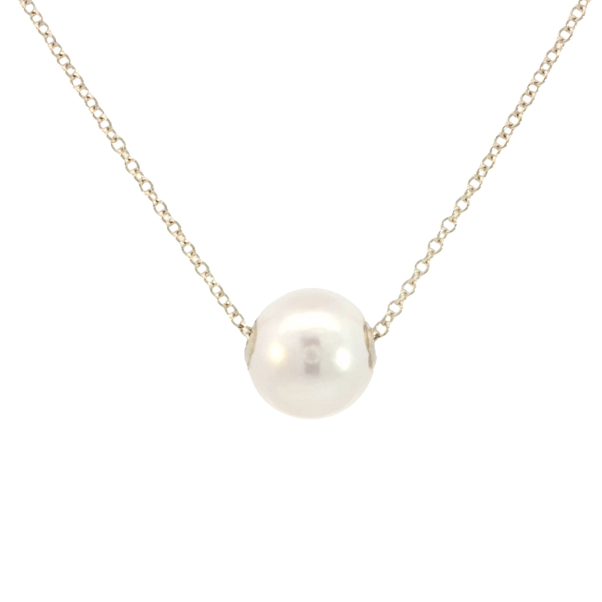 14k Yellow Gold White Cultured Freshwater Pearl Necklace with adjustable 16-18" Cable Chain