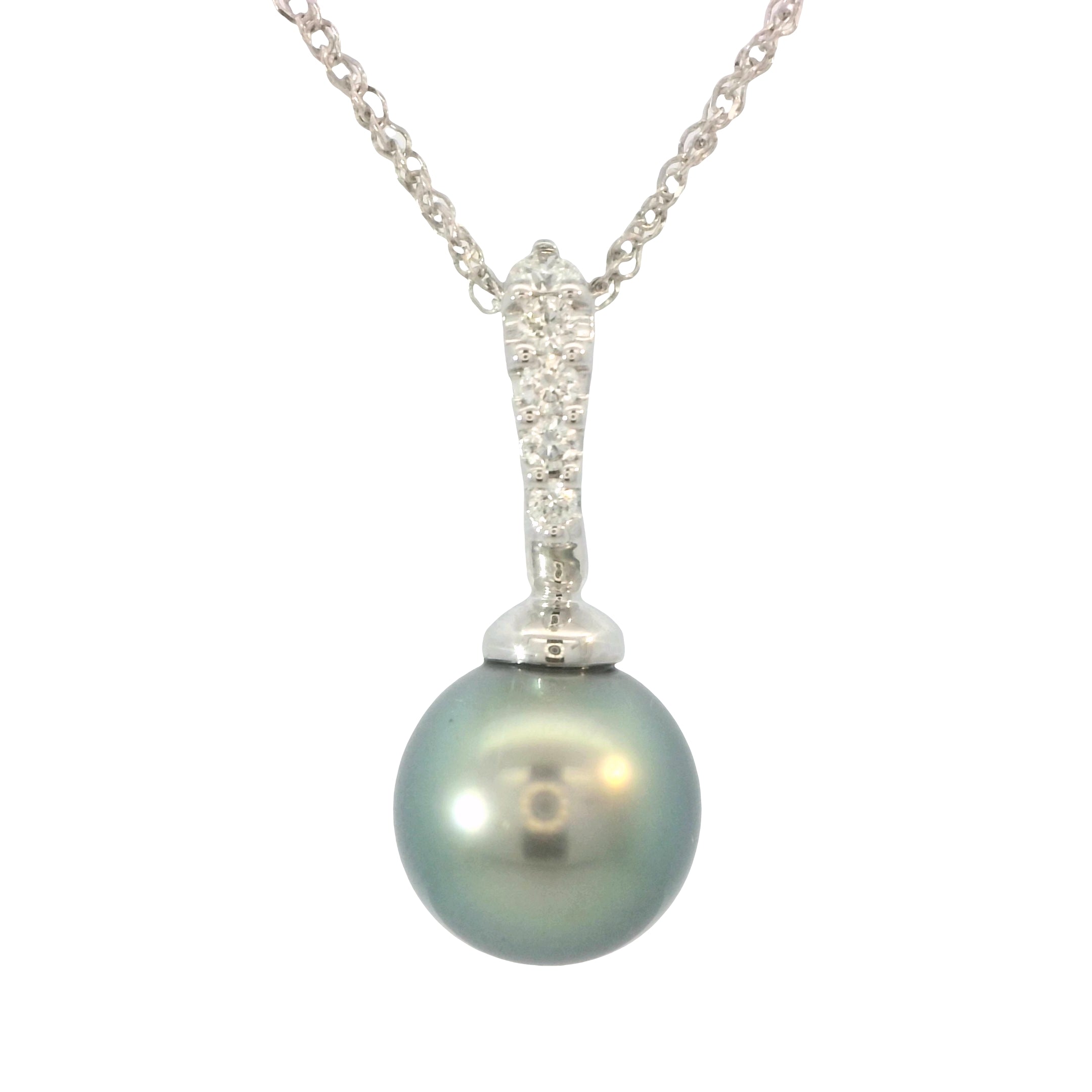 Tahitian Pearl and Diamonds Pendant in White Gold