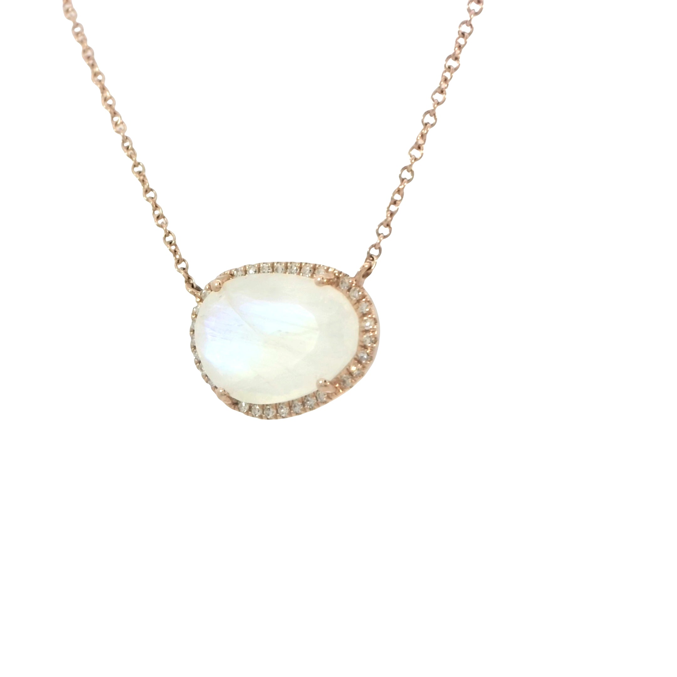 14K Rose Gold Organic Shaped Rainbow Moonstone Necklace W/31 Dia 0.09Tc, Rainbow Moonstone 2.65Tc