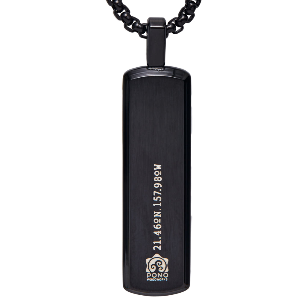 Black Stainless Steel Eternity Koa and Mother of Pearl Pendant/24" Chain