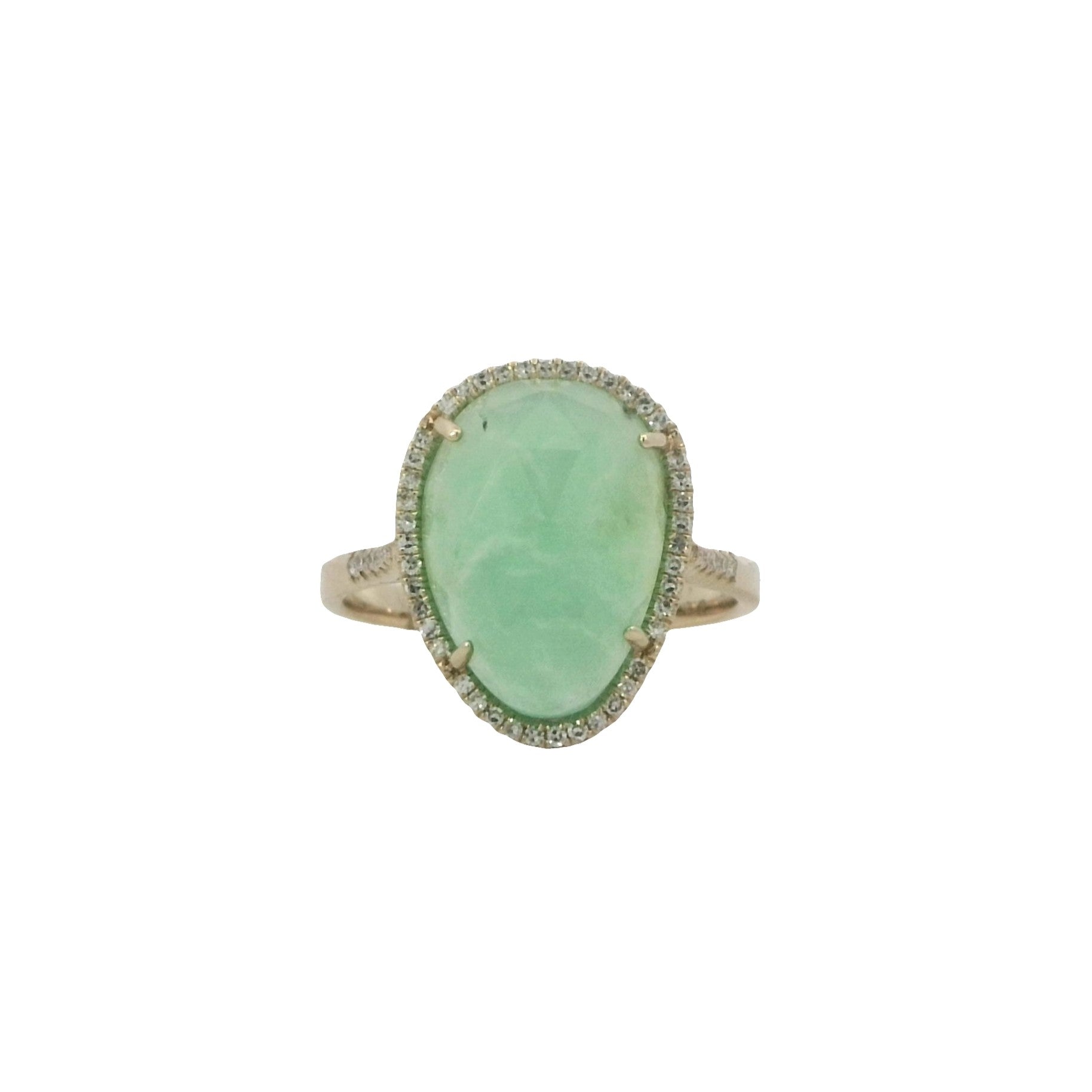 14K Yellow Gold Organic Shape Chrysoprase Ring, Chrysoprase 3.71 CT, 53 Diamonds 0.13 TCW, Size 6