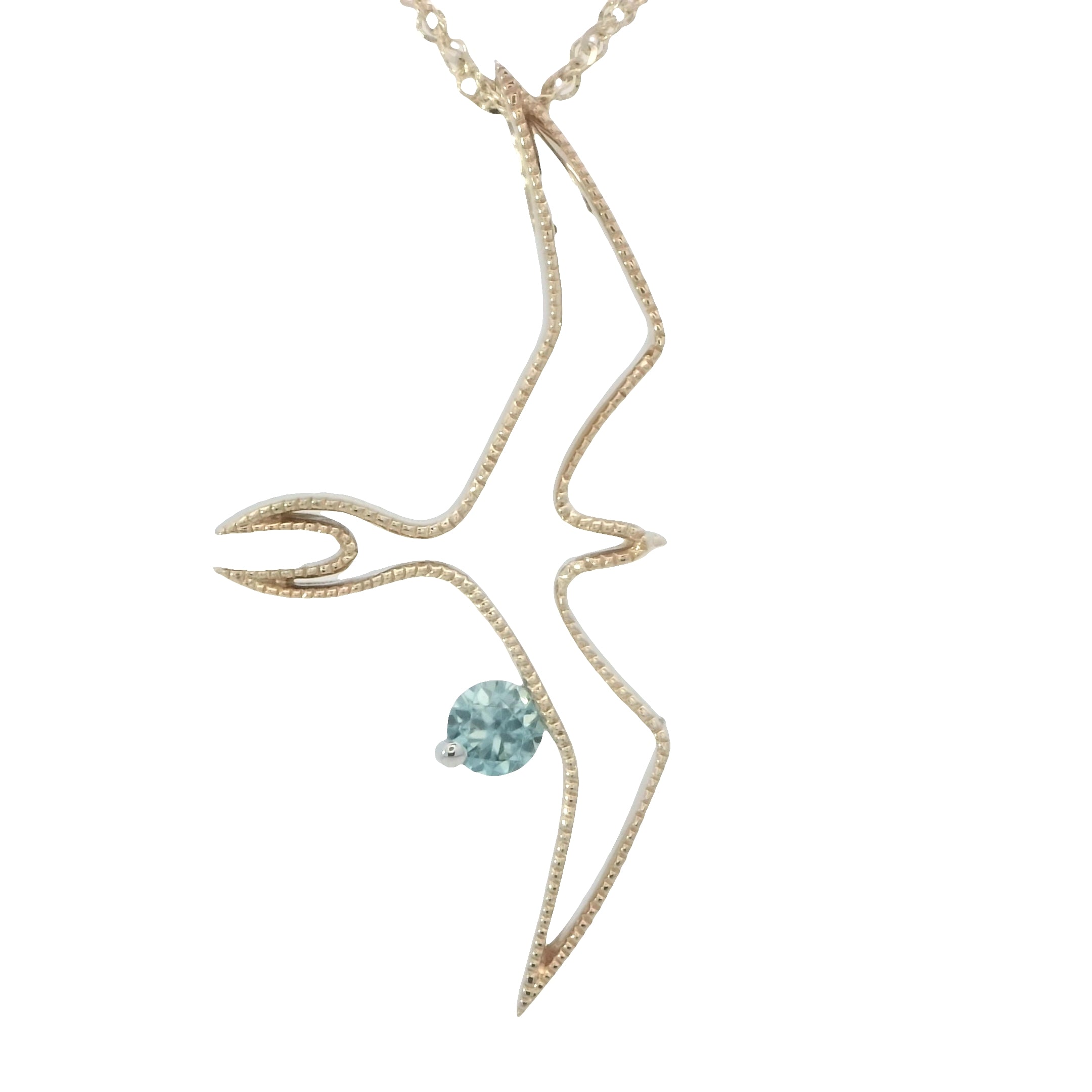 14k Two Tone "Iwa" Bird Pendant with 3mm Blue Zircon, Chain sold separately