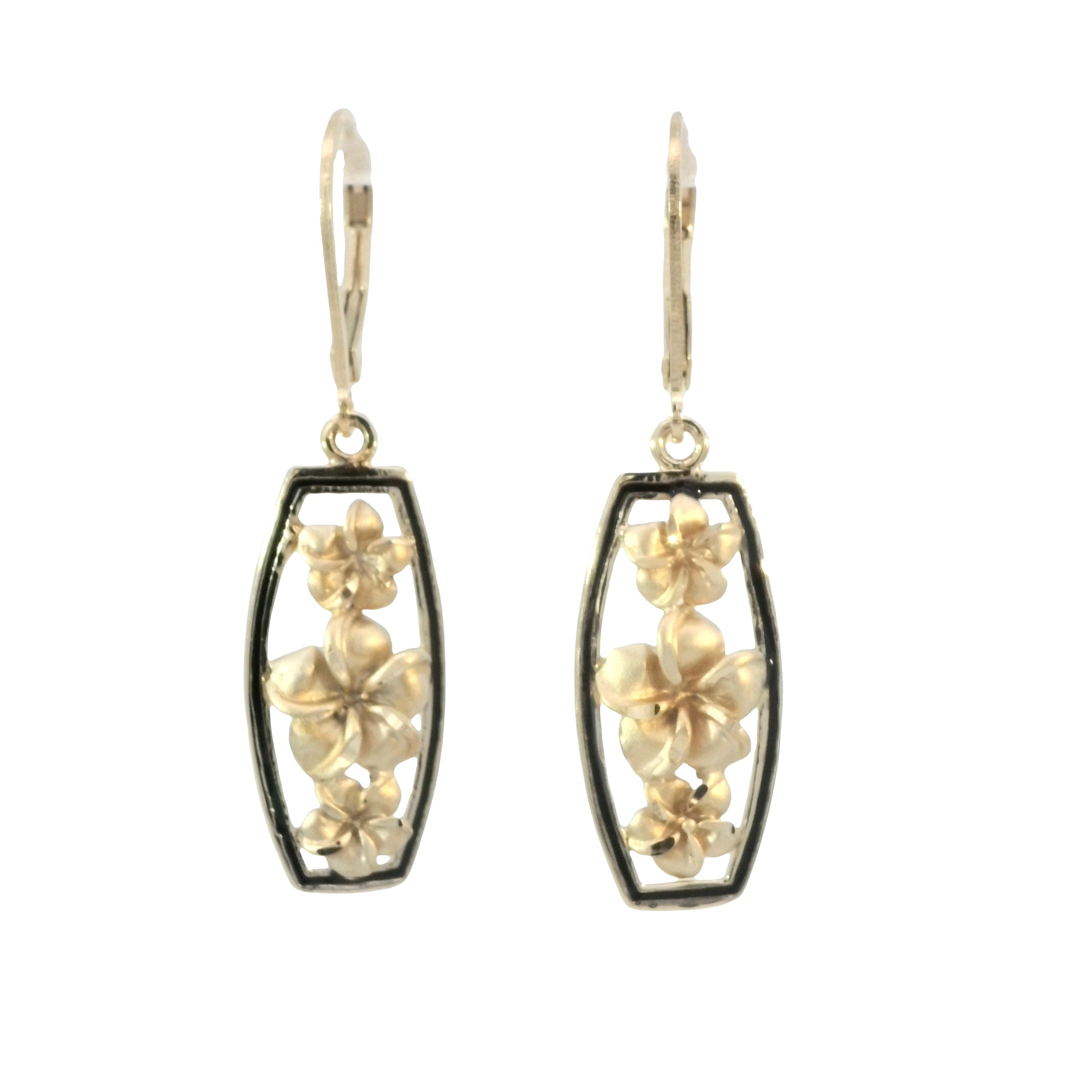 Gold Plated Three Plumeria Leverback Earrings